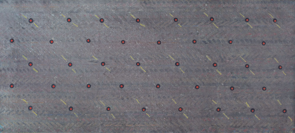 GASTONE BIGGI Roma 12/02/1925 - Ritmi poveri, 1976, tempera su tela cm. 45x100, firma, titolo, anno e archivio al retro, opera registrata presso l'archivio Gastone Biggi come da dichiarazione su foto.