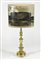 Lampada da tavolo in ottone con paralume stampato raffigurante Arena di Pola e Marina. H. tot cm. 93