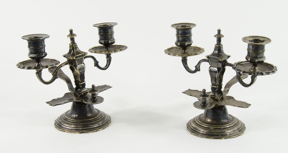Coppia di portacandele in bronzo a due luci. H. cm. 17.