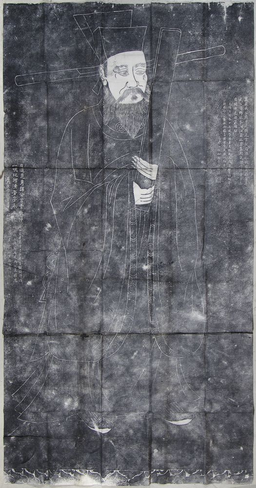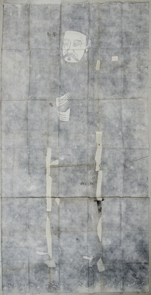 Grande carta di riso dipinta raffigurante personaggio orientale, firmato. cm. 174x94.
