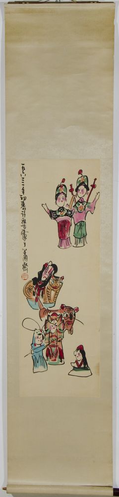 Scroll dipinto raffigurante maschere del teatro cinese. (mancanza).