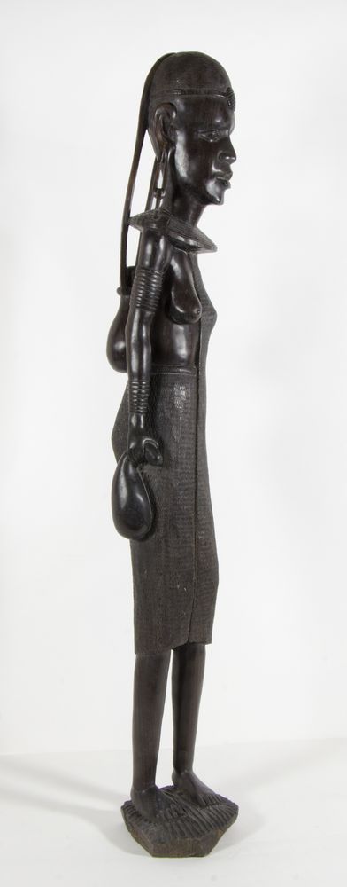Grande scultura in legno ebanizzato scolpito raffigurante figura africana. H....
