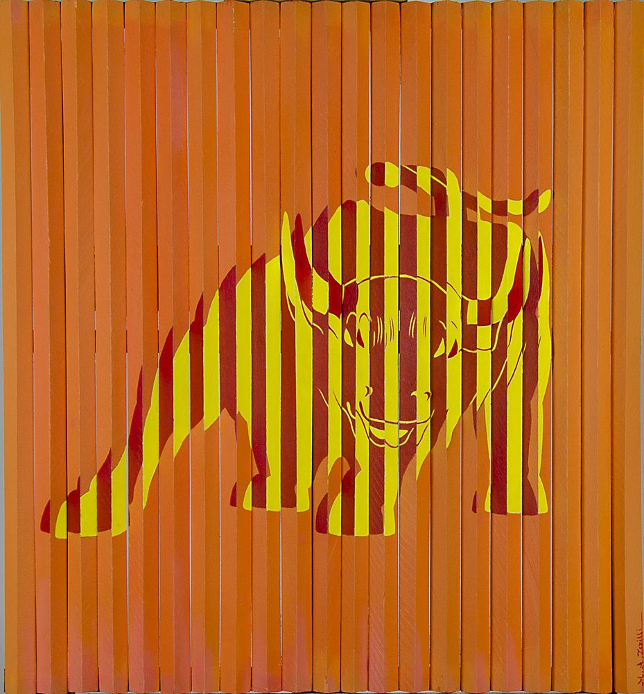 Marco Zerilli Palermo 1975 "Il toro" cm. 55x52 - olio su listelli di legno Firma e data 2015 al retro.