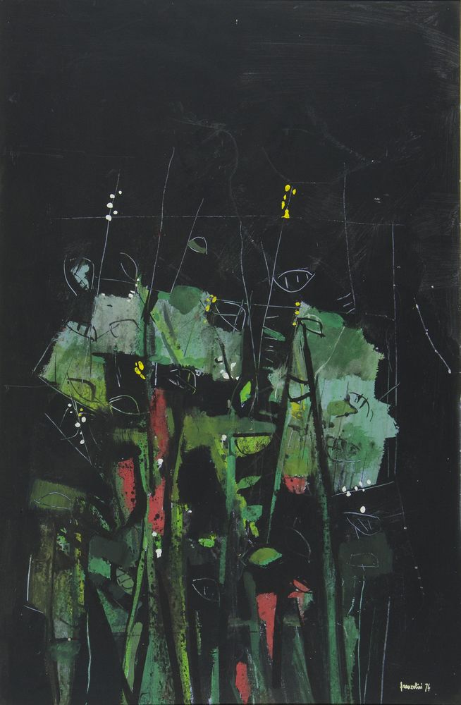 Franzolini "Composizione nero-verde" cm. 90x60 - olio su compensato Firmato b. a d. e datato '74.