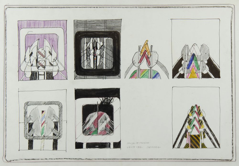 Bruno Chersicla Trieste 1937-2015 "Fauna tecnologica" (1967) cm. 35x50 - tecnica mista Firma e data b. al centro.