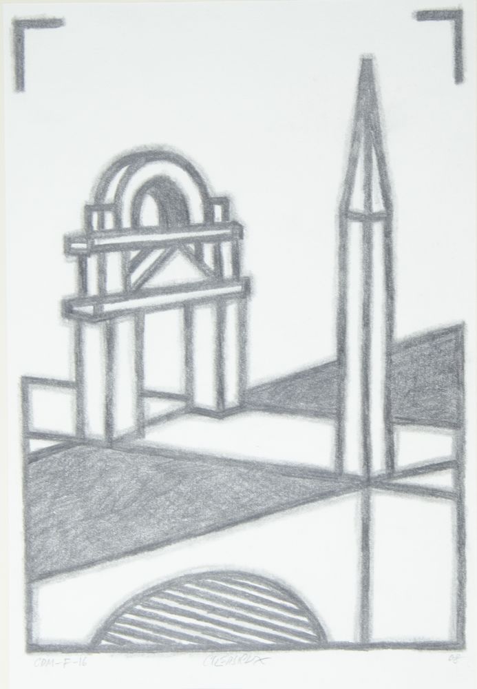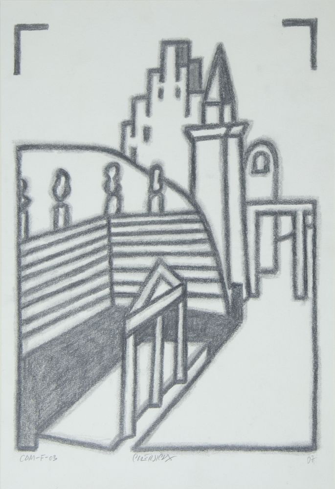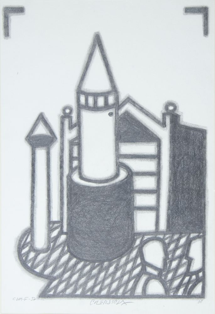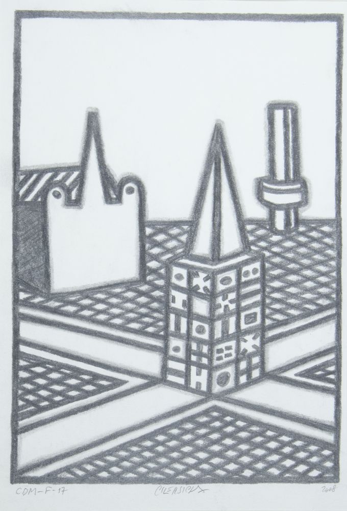 Bruno Chersicla Trieste 1937-2015 Lotto di 4 tecniche miste raffiguranti CDM di cm. 50x35. Esposti alla Galerie Bares di Parigi e pubblicati sul catalogo "En marchant dans les rues de la Ville Imaginaire", Galerie Bares Paris 2010.