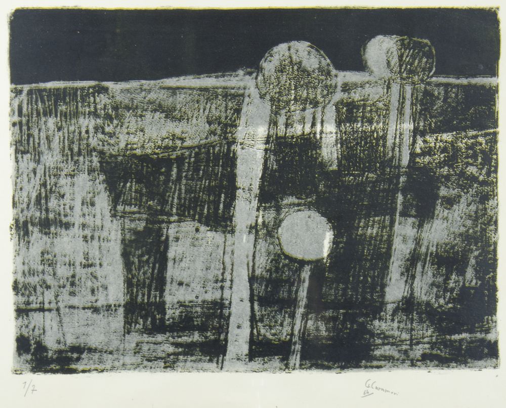 Girolamo Caramori "Composizione" cm. 50x70 - litografia Firmato b. a d. e datato '64. Esemplare 1/7.