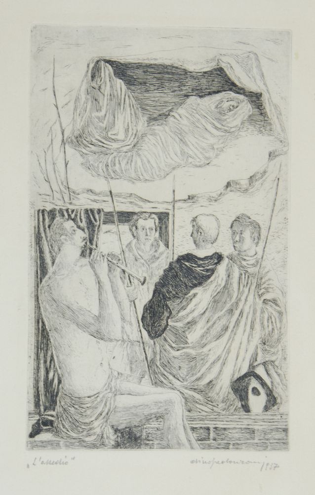 Lotto di 3 opere incorniciate tra cui Prednonzani, misure diverse.
