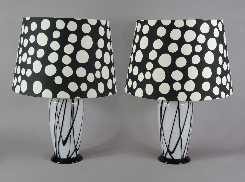 Coppia di lampade da tavolo in vetro incamiciato, con paralume. La Murrina...