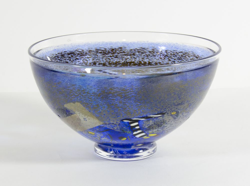 Kosta Boda: ciotola in vetro policromo decorato. Firma incisa sotto la base....