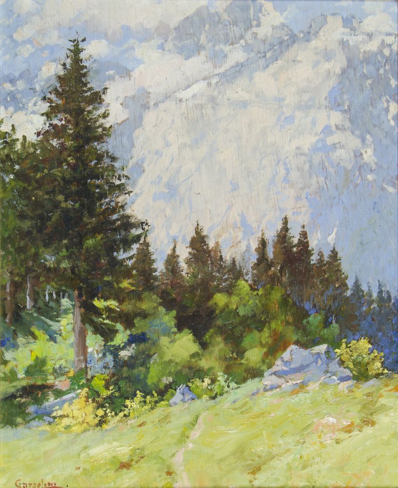 Ciro Garzolini Trieste 1883-1972 "Neve in alta montagna" cm. 42x32 - olio su...