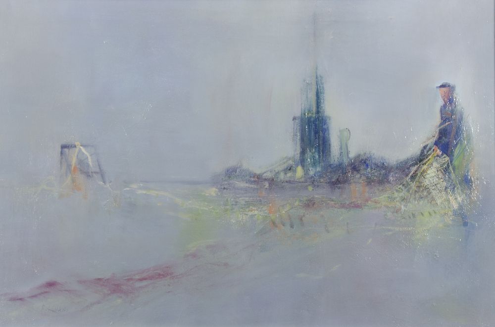 Livio Rosignano Pinguente (Pola) 1924-2015 "Il pescatore" cm. 40x60 - olio su tela Firmato b. a s.