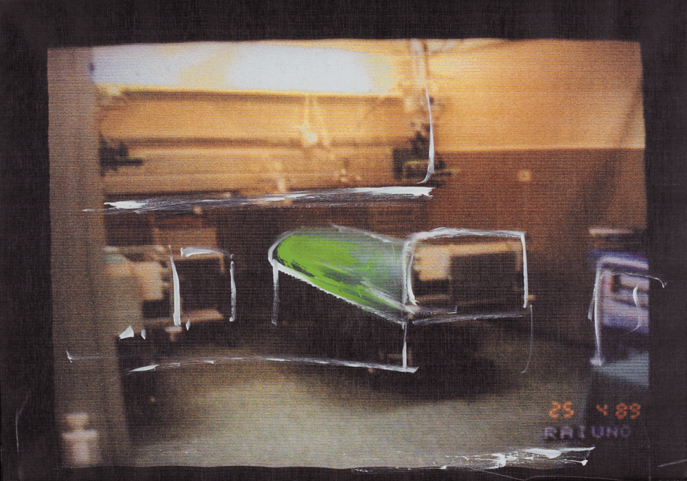 MARIO SCHIFANO Homs (Libia) 1934 - Roma 26/01/1998 Senza titolo, 1990/97 acrilico su tela preparata al computer cm. 70x100, firma al retro, opera registrata presso l'Archivio della Fondazione Mario Schifano come da certificato con foto allegati, pubblicato su "Studio metodologico riguardante la catalogazione informatica dei dati relativi alle opere di Mario Schifano presenti presso la Fondazione M.S. Multistudio", volume II°, pagina 538, repertorio 90/97/358.
