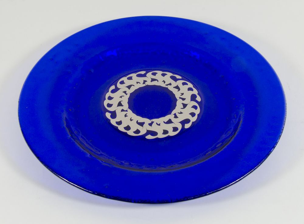 Osella: piatto in vetro trasparente azzurro. Diam. cm. 40.