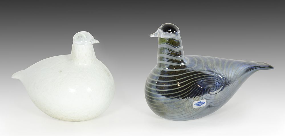 Nuutajarvi Cristal: lotto di 2 colombe in vetro.