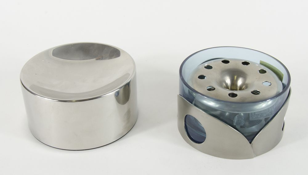 Lotto composto da posacenere Artemide e portafiori in vetro e peltro FMC.