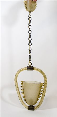 Lampada a sospensione in vetro di Murano. Barovier & Toso?. H. cm. 105.
