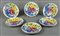 Galvani: lotto di 6 piatti in ceramica policroma. Marcati. Diam. cm. 15. (difetti).
