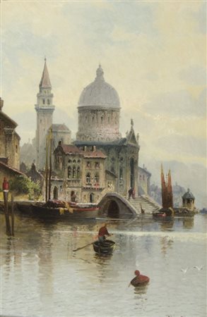Karl Kaufmann 1843-1902 "Chiesa sul mare" cm. 31x23 - olio su tavola Firmato...