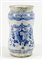 Albarello in maiolica decorato in blu con stemma nobiliare e motivi floreali....