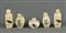 Lotto di 5 snuff bottle in osso incise e colorate con figure di animali. XX secolo.
