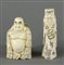 Lotto di 2 figure in osso inciso. XX secolo. H. cm. 15. (difetto).