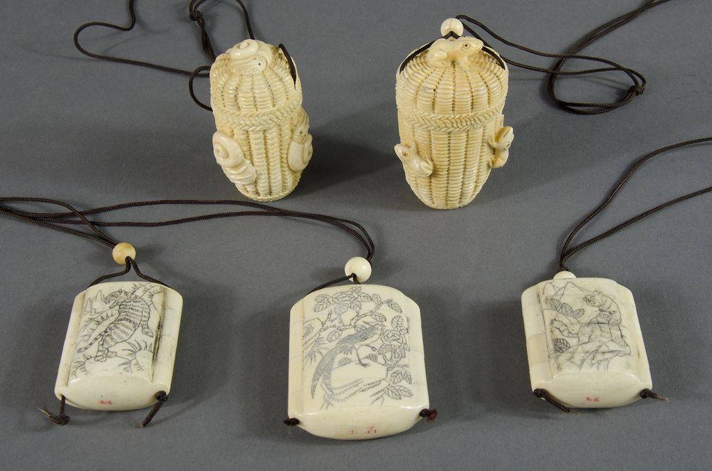 Lotto di 5 inro giapponesi in osso. XX secolo.