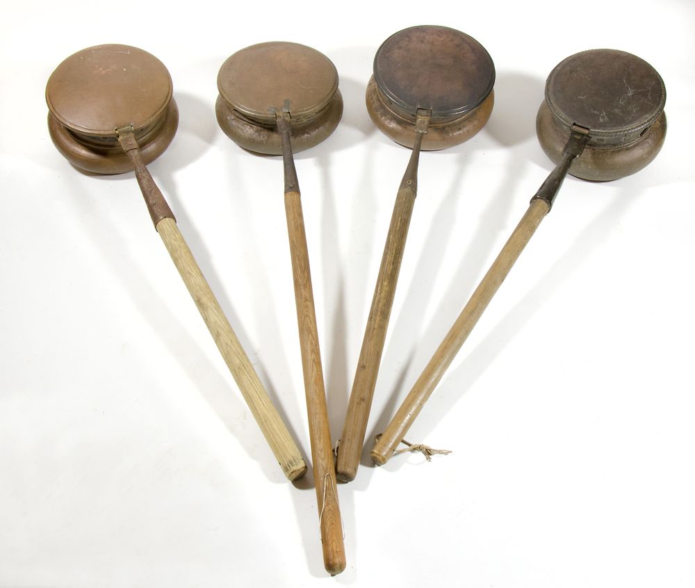 Lotto 463 | Lotto di 4 pentole in rame con manico in legno.