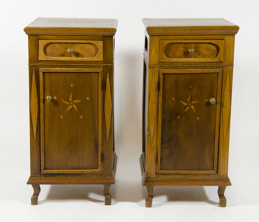 Lotto 473 | Coppia di comodini in legno con anta e cassetto.
