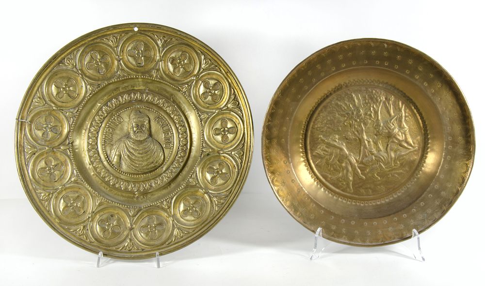 Lotto di 2 elemosinieri sbalzati. Diam max cm. 44. (difetto).
