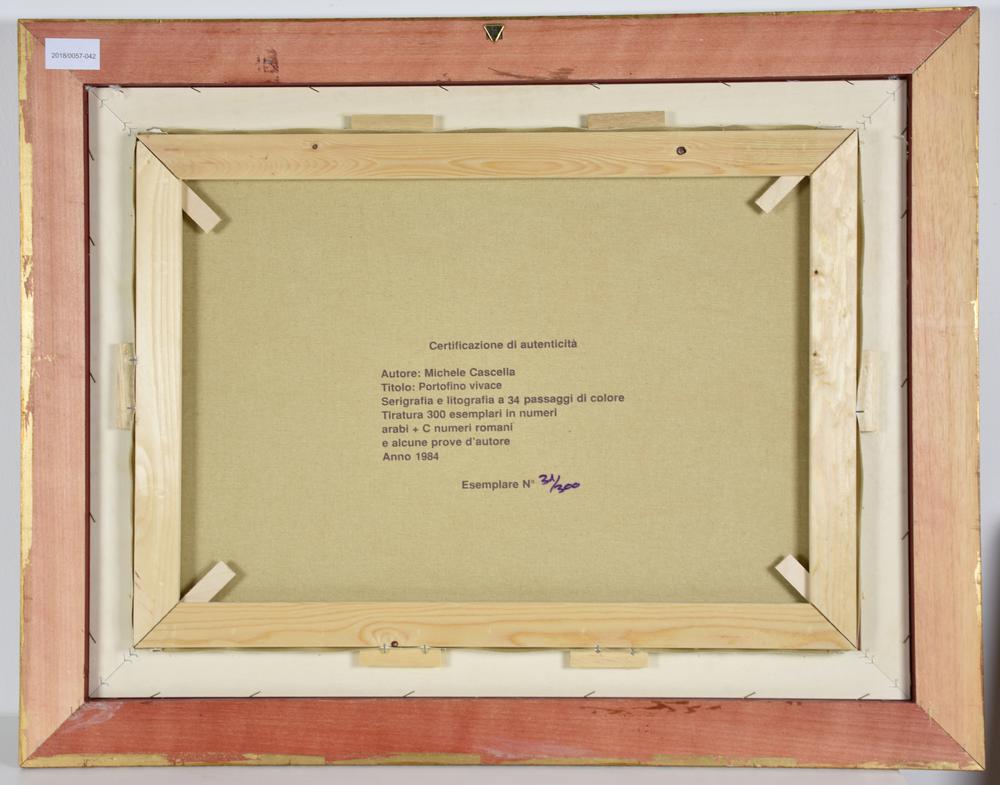 Cascella Michele, Portofino vivace serigrafia e litografia su tela a 34 passaggi di colore, cm 50x70 esemplare 31 su 300 sul fronte: firma eseguita nel 1984