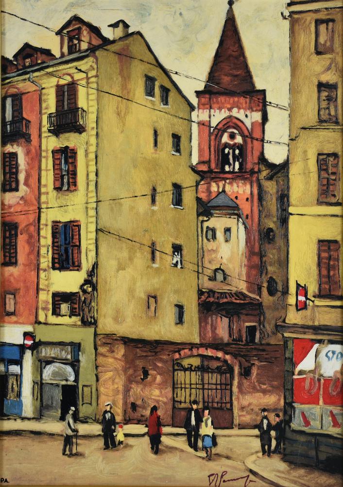 Gonzaga Giovan Francesco, Vecchia Milano serigrafia su tela, cm 70x50 esemplare prova d'autore sul fronte: firma