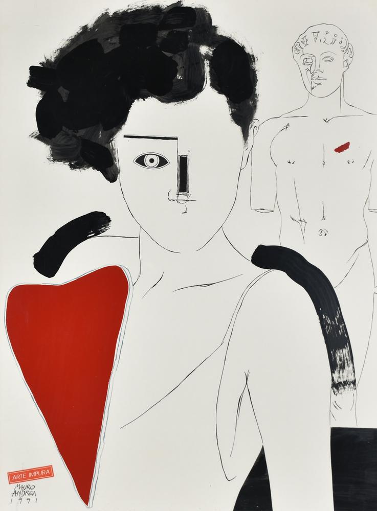 Lotto 40 | Andrea Mauro, Puoi salvare il mio cuore? china e smalti su carta, cm 81x60...