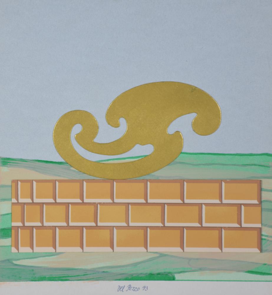 Del Pezzo Lucio, Composizione tempera e collage su cartoncino, cm 23x21,5 sul fronte: firmata e datata eseguita nel 1993