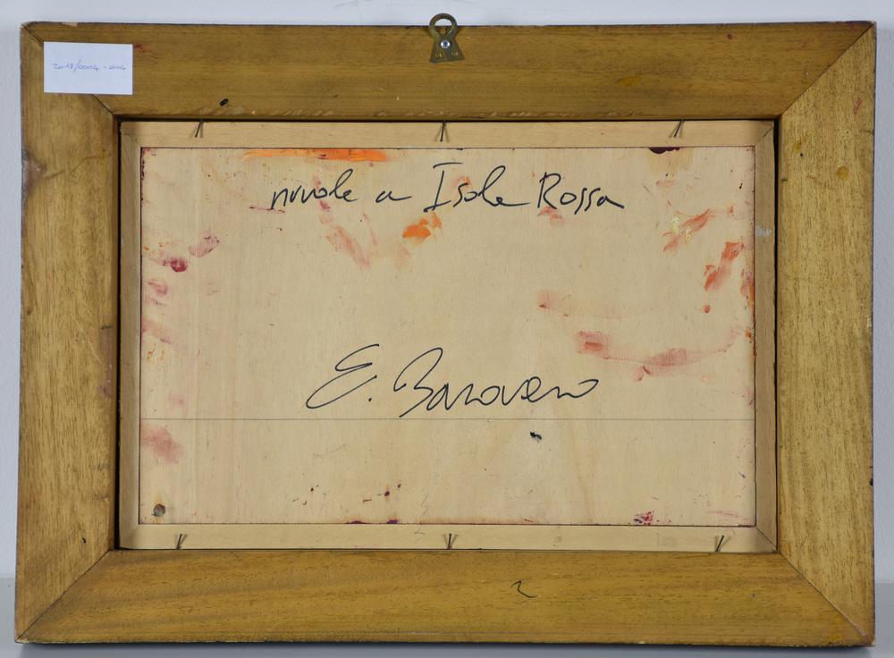 Ermanno Barovero, NUVOLE A ISOLA ROSSA olio su tavola, cm. 25x38 sul retro: firma e titolo L’opera è accompagnata da autentica dell’artista su fotografia