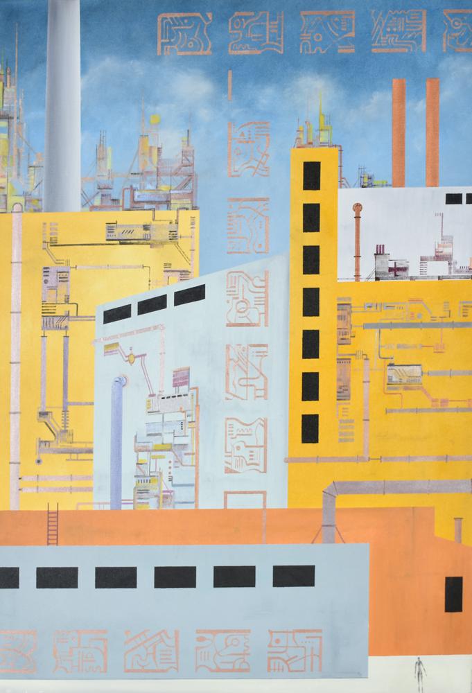 Gianni Maria Tessari, FABBRICHE E CIELI #4 olio su tela, cm. 100x70 sul...