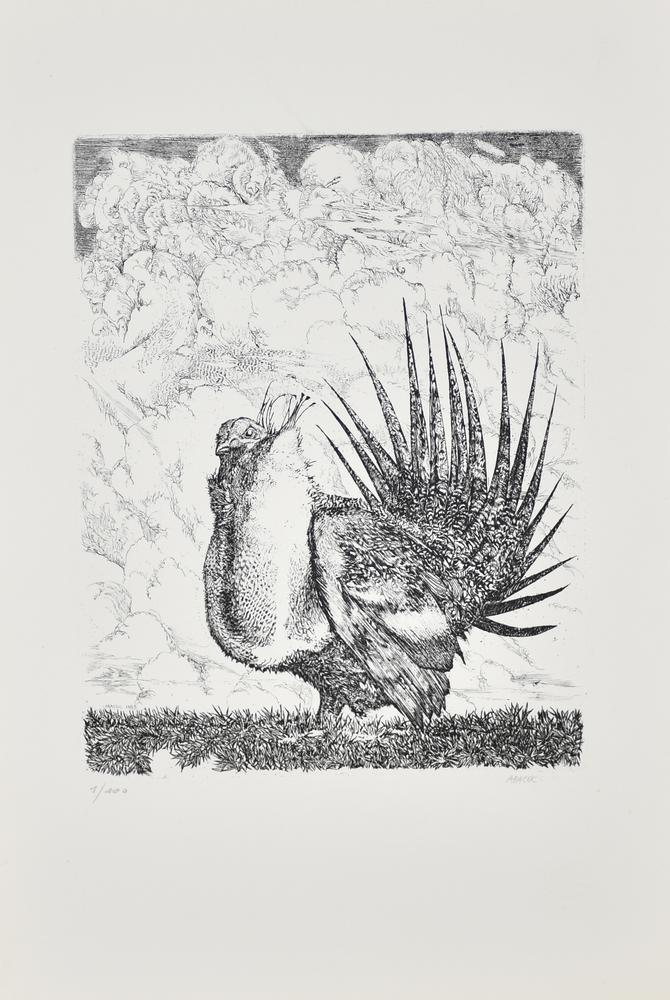 Abacuc, Volatile incisione su carta, cm 50x35 (lastra cm 31,5x24,5) esemplare...