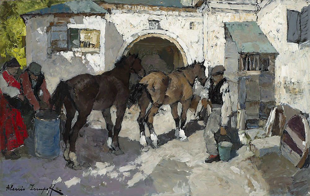 Alessio Issupoff (Vjatka 1889 - Roma 1957)"Rientro in stalla"olio su...