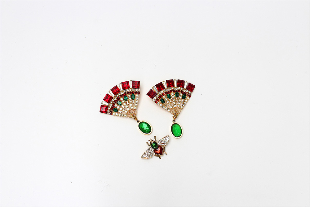 Lotto composto da orecchini pendenti e spilla a guisa di insetto (difetti e segni d'uso)