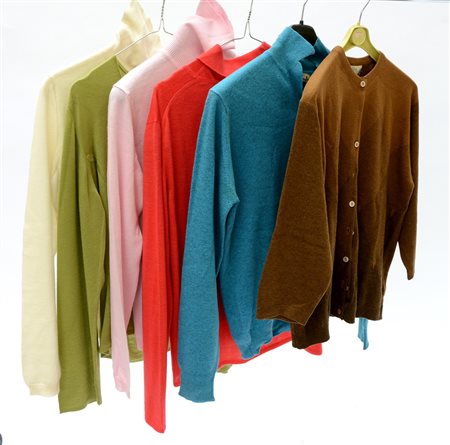 Lotto di cinque maglie e un twin-set in vari colori e materiali (misure diverse) (difetti e segni d'uso)