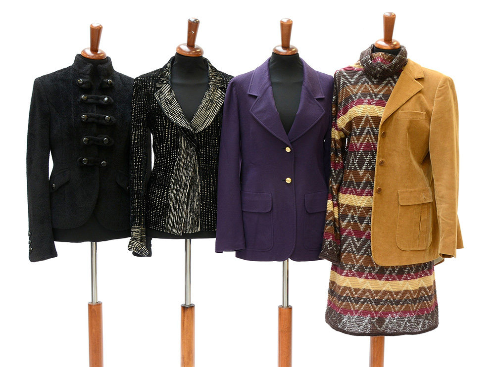 Lotto di giacche, camicie, un vestito di maglia di materiali, colori e fogge diverse (tg. 40/42) (segni d'uso)