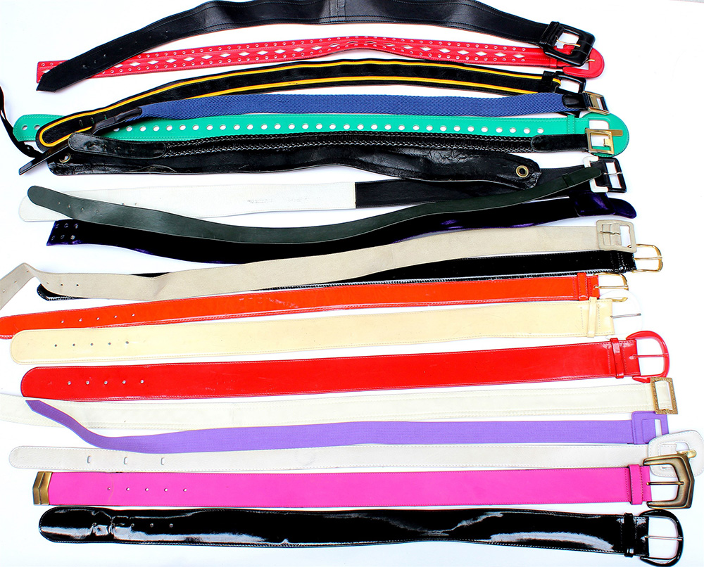 Lotto di venti cinture di medie dimensioni, forme, materiali, colori e...