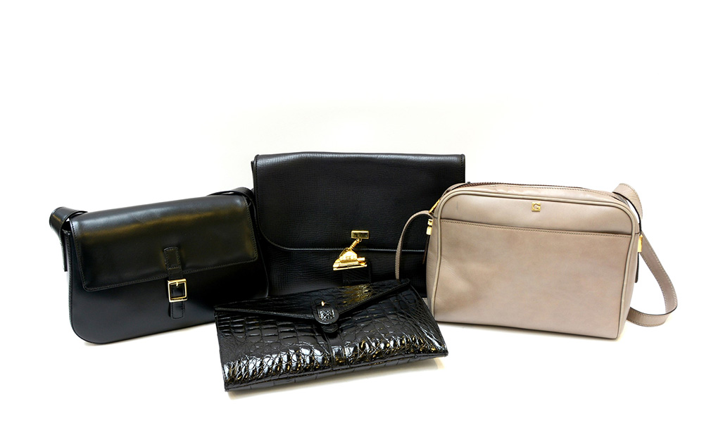 Lotto di quattro borse a tracolla e non, vari modelli, colori e pellami (lievi difetti)