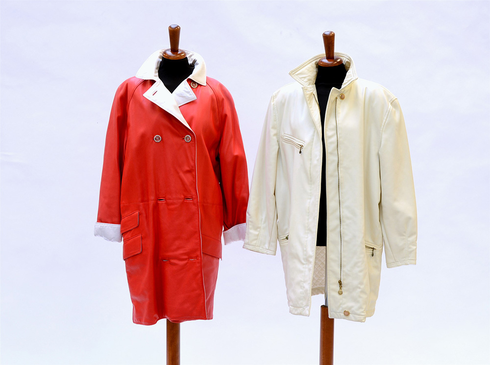 VERSACE SPORT Lotto di due giacconi in pelle, uno avorio e l'altro rosso con risvolto bianco perla (tg. 42/44) (difetti e segni d'uso)