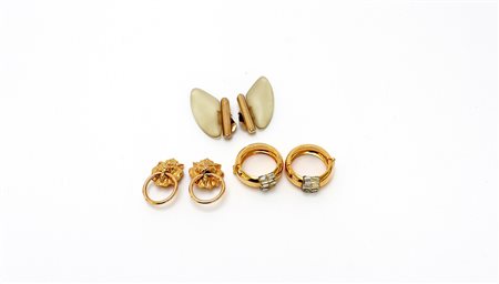 PAOLO BELLINI Lotto di tre paia di orecchini a clips in metallo color oro...