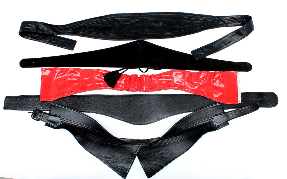 lotto di cinque cinture tutte a fascia, in materiali, dimensioni e colori differenti (lievi difetti)