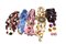 Lotto di cinque collane a più fili rifinite in diversi materiali come le tre...