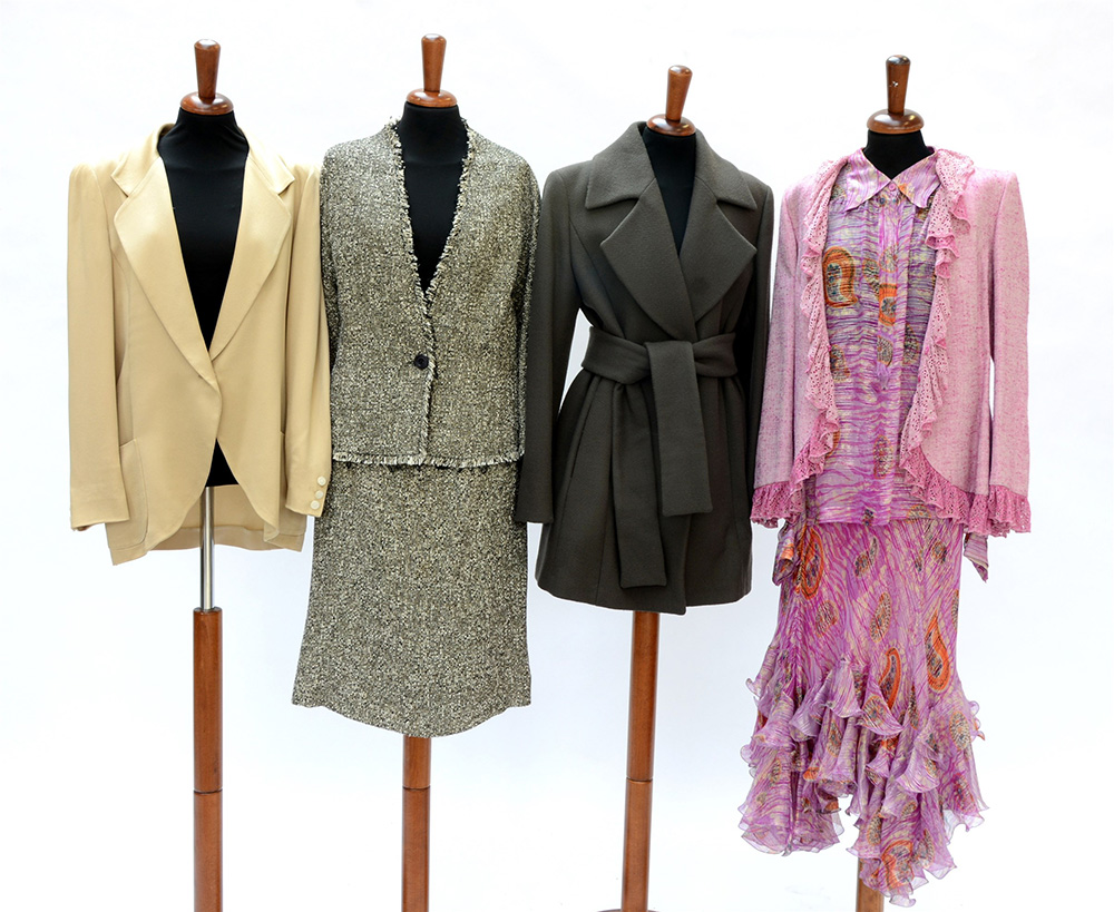 Lotto composto da un tailleur, una giacca con gonna e camicetta, un giacca e un cappotto 3/4 con cintura in materiali e colori differenti (tg. 42/44) (lievi segni d'uso)