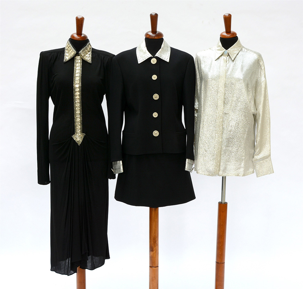 Lotto composto da un tailleur e una camicia uniti ad un vestito in maglina con strass (tg. 40/42) (segni d'uso)