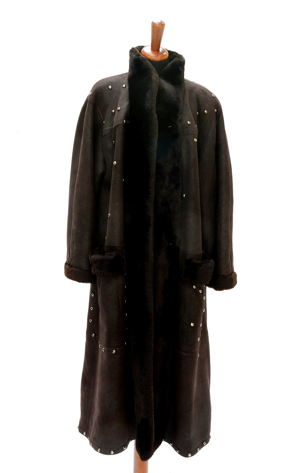 Fourures. A chocolate colour shearling coat decorated with studs (tg. 42/44) (wear)